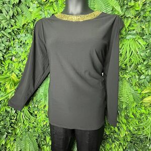 CHLOE & JASMINE Women Tops 1XL Black Cold Shoulder Gold Sequin Neckline NWT 0163