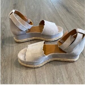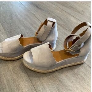 CHLOE Lauren Suede Platform Espadrille Scalloped Design EU 40 US 10