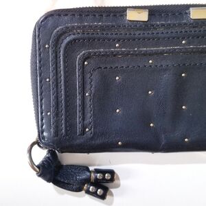 CHLOE Marcie Continental Long Leather Wallet Black Gold Studded Calfskin