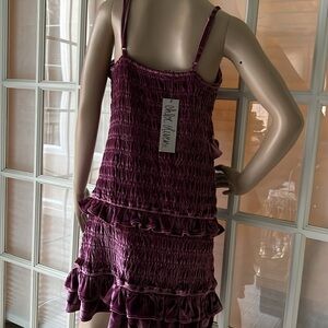 CHLOE Oliver NWT Velvet Ruffle Tank Dress Layers Smocking Size Small Stretch