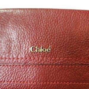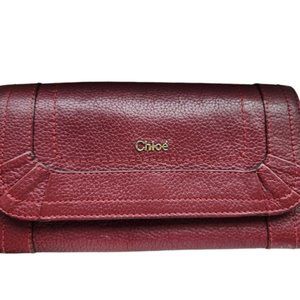 CHLOE Palati Zip Around Continental Wallet Burgundy Leather Authentic Womens