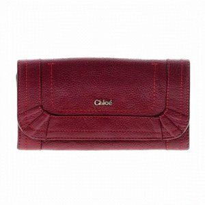 This wallet version of the Chloe Paraty showcases the styles horseshoe-inspired stitching in glsy burgundy leather. It features beautiful pebbled leather that has tone-on-tone stitching and raised logo hardware. It has plenty of room inside for all of your cards, coins, and cash.