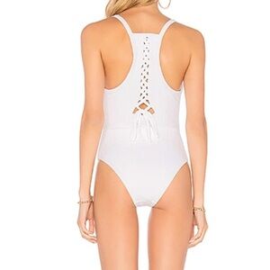 Chloe Rose white Coronation cut out one piece swimsuit, features a tank style top with cut out center in the back high cut side rib soft fabric made of cotton in Lycra.