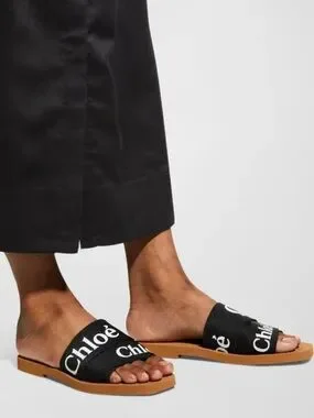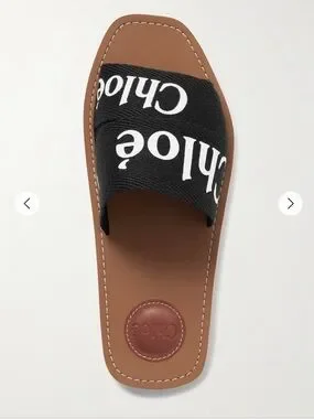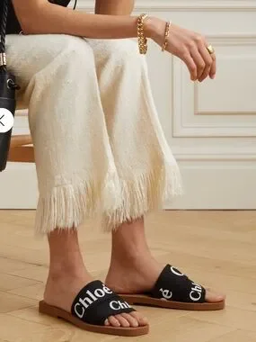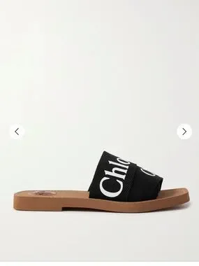 Chloe Woody Slides with black canvas print✨Stunning. Size 39. Barely worn. ✨From Net a Porter.
