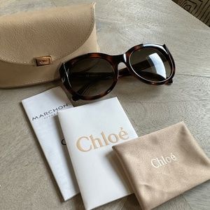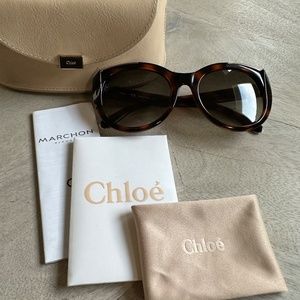 CHLOE Tortoise Shell Cat-eye Sunglasses with Arrow Detail, New