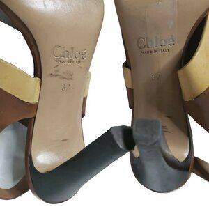 CHLOE Women's Brown & Camel Leather Ankle Strap Buckle Sandal Heels Size 6/37
