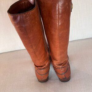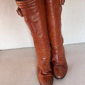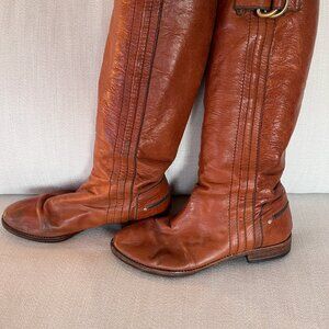 Chloe Tucson Riding Boots Brown Leather and Metal Size 40.5 Knee High Flat Boots