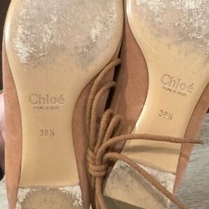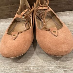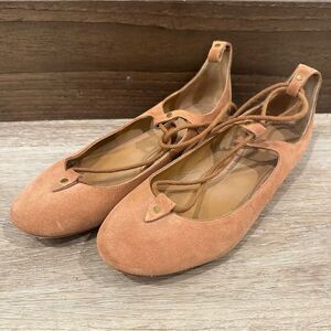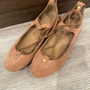 CHLOE Foster Camel Suede Lace-Up Ballerina Flat Ballet Shoes Size 39.5