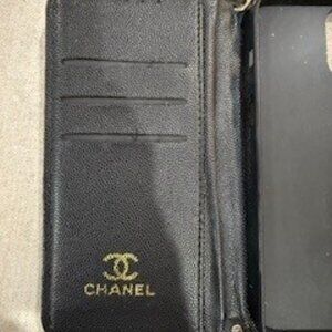 Black caviar leather phone wallet folio case. Is not real but has the Double C's on the clasp and the Chanol stamp on the interior. Would have used it forever, but my new phone is a iPhone 16 Pro Max and it does not fit I received constant comments on it and everyone loved it! I would love to have someone else use it and love it as much as I do!