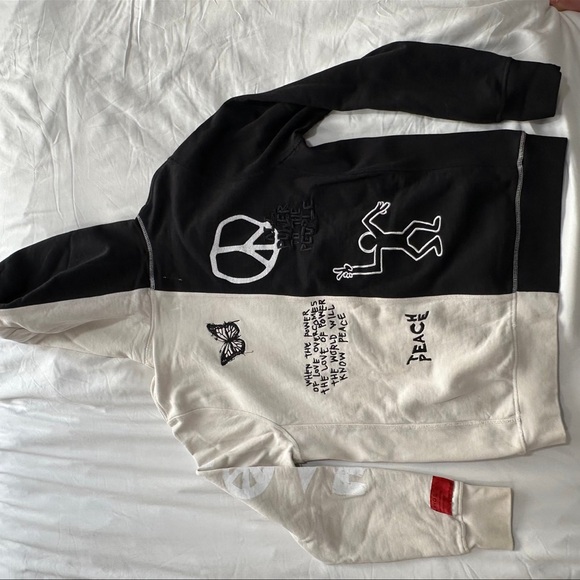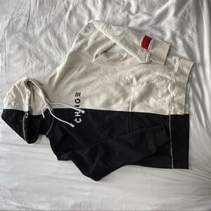 Cream hoodie featuring a bold red tag and color block design. Great condition, CHNGE brand