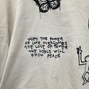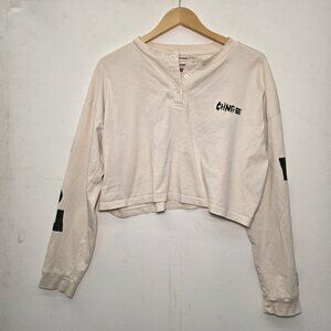 CHNGE Cream Long Sleeve Embroidered Grafic Crop Shirt Size Large