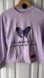 Lavender long sleeve tee. Boxy fit and cropped length. Embroidered purple monarch butterfly on the front with statement “the butterflies we feel should be from love not fear”.
