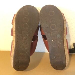 CHOCOLAT BLU Morgan Wedge Sandals Women's Size 7.5 Triple Band Leather Platform