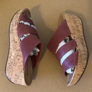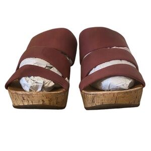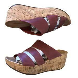 CHOCOLAT BLU Women's Morgan Triple Band Leather Cork Wedge Platform Sandals Size 7.5 Rose ♡