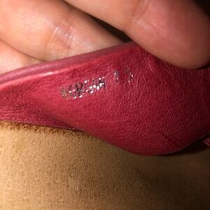 ♡ Women's size: US7.5, Red/Rose. Slip on wedge sandal, Lightweight feel, Three straps, Some stain, Pre-loved item looks in good condition to me, please be aware of some natural wear, stains and distressing. See descriptive photos for approximate measurements, condition, No care/material tags.