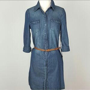 CHOCOLATE Women Denim Jeans Dress Button 3/4 Sleeve Casual Top Shirt Mini Dress with Belt