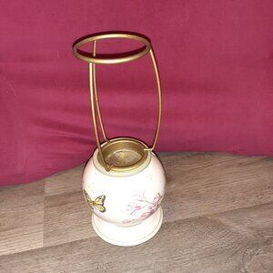 PIC#16: GOLD + WHITE PORCLIEN LAMP CANDLE HOLDER WITH MISSING TOP (BROKE)