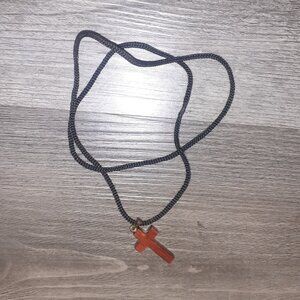 PIC#2: WOOD CROSS WITH BLACK ROPE