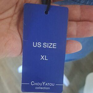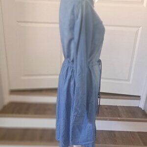 CHOUYATOU Denim Dress Long Sleeve draw string waistband Snap Down XL NWT