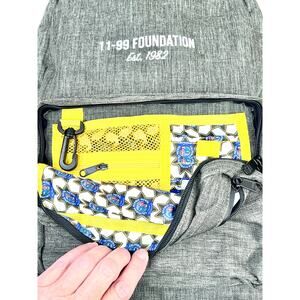 The charcoal grey laptop backpack is perfect for daily commuting or air travel. The backpack features an anti-theft zipper entry design, internal mesh and zipper organizers, a USB charging port, and 15″ padded compartments for laptops and tablets. Embroidered in white thread “11-99 Foundation Est 1982”. (20″H x 12″W x 6″D)