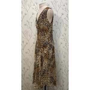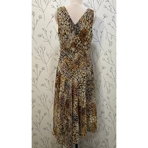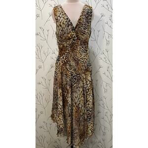 CHRIS MCLAUGHLIN Animal Print Leopard Surplice Asymmetrical Dress 12 Fairy Flowy