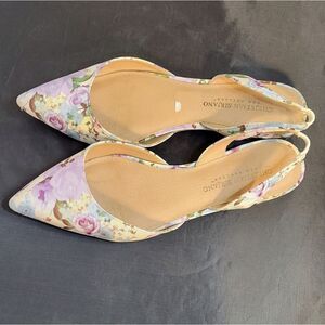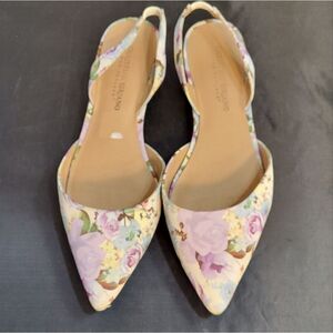 CHRIS SIRIANO POINTED TOE MULTI-COLOR FLORAL PRINT DESIGN BACK STRAP SHOE SIZE 8W COLOR LIKE PURPLE, GREEN, YELLOW AND MORE MADE WITH TEXTILE UPPER BALANCE MAN MADE MATERIALS THIS ITEMS IS PRE-OWNED EXCELLENT CONDITION WITH ONLY LIGHT SIGNS OF WEAR IF ANY CHECK THE PICTURES