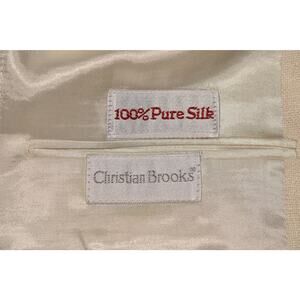 CHRISTIAN BROOKS NEW $395 VTG Textured Silk Beige Blazer Skirt Suit Midi Size 12
