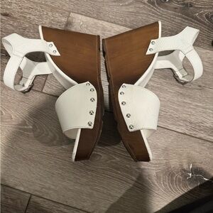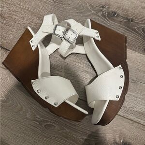 CHRISTIAN DI RICCIO WHITE LEATHER PLATFORM WEDGE SANDALS with studs 9.5 (41)