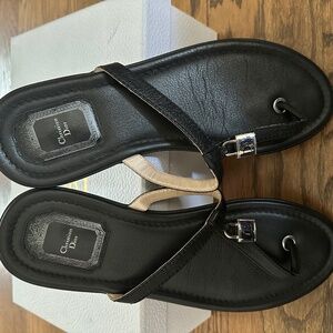 Classic Summer Chic! Christian Dior Lock Charm Leather Thongs/Flip Flops featuring silver Dior lock.