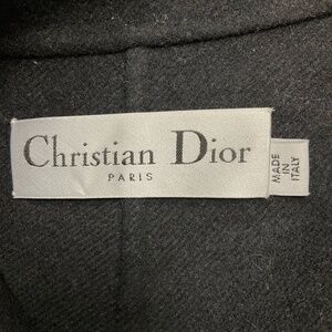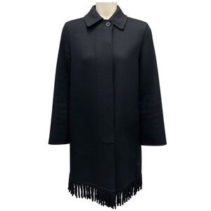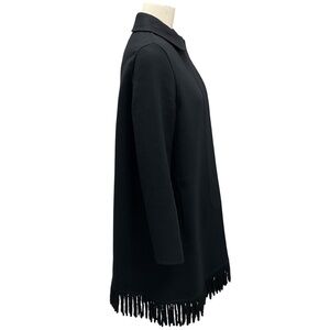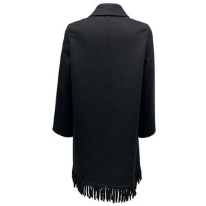CHRISTIAN DIOR BLACK FRINGED HEM WOOL COAT