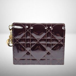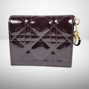 CHRISTIAN DIOR BURGUNDY WINE PATENT CANNAGE WALLET WITH REMOVABLE CHARM