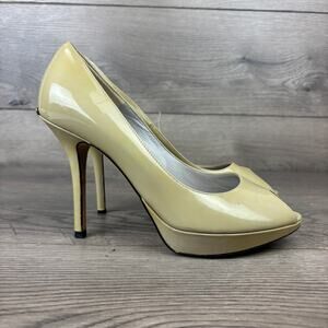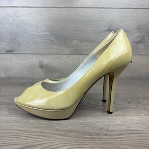 CHRISTIAN DIOR Beige Leather Peep-Toe Platform High Heels Pumps Women's 7 / 38