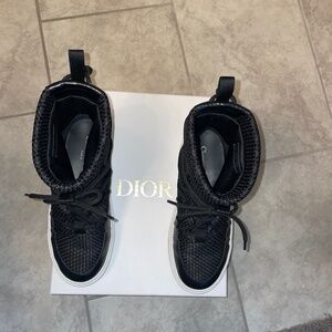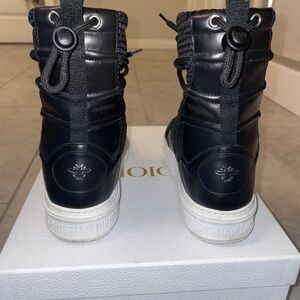 These Christian Dior Leather and Mesh Resille Dior Solar Boots are A RARE find. These boots feature mesh fabric with leather trim and a unique wrap around lace up closure. These are a perfect fit for all day wear.