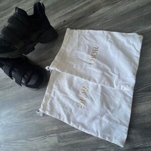 The Christian Dior Black Tech Fabric/Suede D-Wander Sneakers in size 7/37.5 are a stylish and athletic pair of shoes designed for women. These sneakers feature a sleek black color with a fabric lining and suede outsole, perfect for adding a touch of luxury to any outfit. The D-Wander Sneaker model by Dior combines high-end design with practical functionality, making it a versatile choice for everyday wear. Made with durable nylon upper material and comfortable suede insole, these sneakers offer both style and comfort for the modern woman on the go. Perfect for everyday wear! Going retail price $990.