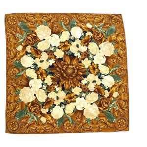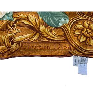 CHRISTIAN DIOR Brown With Flower Print Silk Scarf Italy SQR 34’’ EX.COND