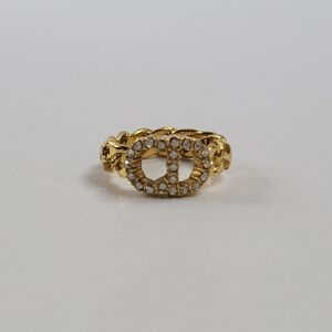 Pre Loved CHRISTIAN DIOR CD Logo Rhinestone Gold Tone Ring. The overall is in Very Good condition with minor sign of Scratches or Tarnishing.