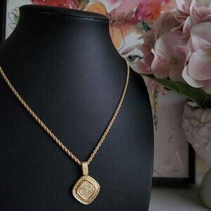 CHRISTIAN DIOR CD Logo Rhinestone Rhombus Shape Pendant Necklace
