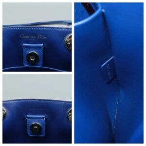 This is an authentic CHRISTIAN DIOR Medium size tote. This delightful tote is crafted of calf skin and beautifully textured snakeskin on the sides. The bag features top handles, an optional shoulder strap, and silver Dior charms. The top opens to a blue leather interior with small patch pockets.