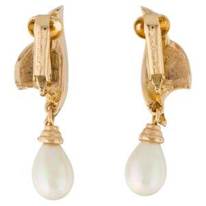 CHRISTIAN DIOR GOLDEN WINGS W/ CRYSTALS AND LONG TEARDROP FAUX PERL EARRINGS 30