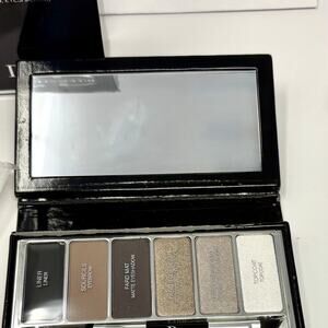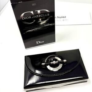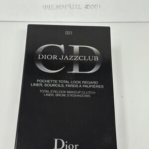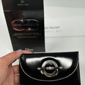 Rare Dior Jazzclub Total Eyelook Palette 001, a sleek black clutch-style case with chrome detailing. Includes 6 essentials for a complete eye look: liner, eyebrow powder, matte eyeshadow, 2 shimmering shadows, and a topcoat. Comes with two dual-ended Dior applicators and original box.