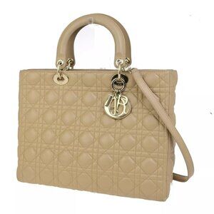 CHRISTIAN DIOR Lady Cannage 2Way Shoulder Hand Tote Bag Leather Beige 689RK841