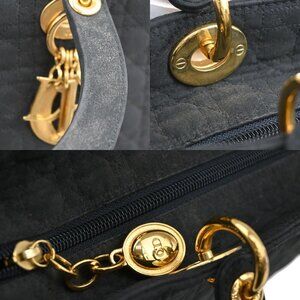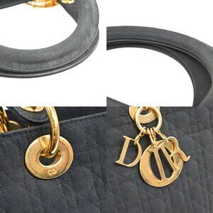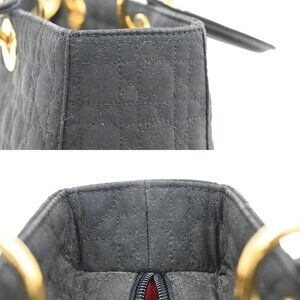 CHRISTIAN DIOR Lady Cannage Tote Hand Bag Nylon Leather Black GHW Italy 73FC009