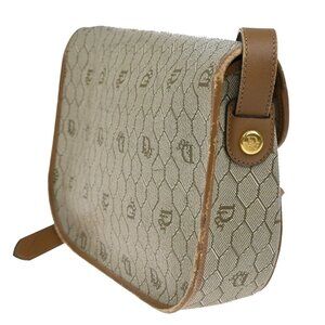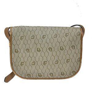 CHRISTIAN DIOR Logo Honeycomb Shoulder Bag PVC Leather Brown GHW France 64FC100