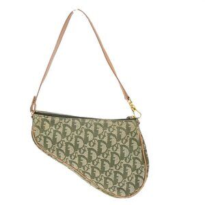 CHRISTIAN DIOR Logo Saddle Shoulder Bag Canvas Leather Green Spain