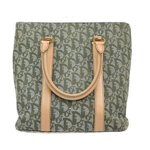 CHRISTIAN DIOR Logo Trotter Pattern Shoulder Bag Canvas Leather Green 70KB031