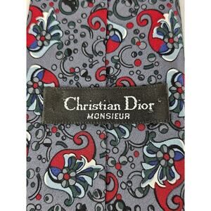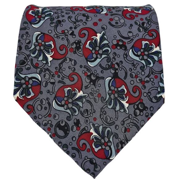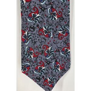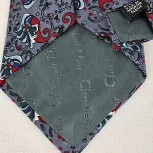 CHRISTIAN DIOR MEN'S VINTAGE GRAY 4" TIE WITH BURGUNDY & WHITE PAISLEY PATTERN