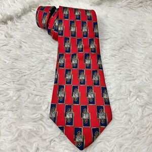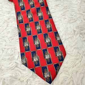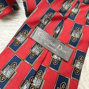 CHRISTIAN DIOR Men’s Red Blue Baroque Print 100% Silk Neck tie Vintage