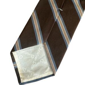 CHRISTIAN DIOR Mens Striped Brown Vintage Neck Tie