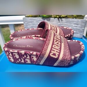 Authentic! In excellent condition! The iconic Dior D-way slide in platform! style Super comfortable! Heel height approx 2" the perfect height for a platform. Dress up or down! The color is Burgundy and the lettering is a very light cream color. Very unique and goes with anything! You will get lots of looks and compliments in these beauties! I hate to part with them but I never wear them enough to keep them. ππΌπ₯