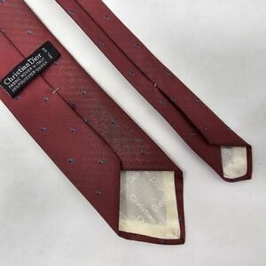 CHRISTIAN DIOR POLYESTER SILK TIE PINK RED BLUE POLKA DOT LOGO TEXTURED 3"